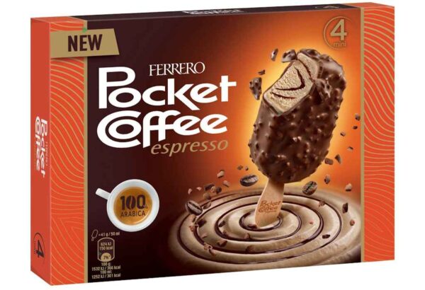 Per gli amanti del gusto del caffè, invece, arriva il nuovo stecco Pocket Coffee® che unisce il gusto Pocket Coffee® alla golosità del gelato. La novità, in formato mini size è composta da un cremoso gelato al caffè 100% Arabica, nota distintiva arricchita da una variegatura del medesimo gusto, ricoperta da un guscio di cioccolato al latte e granella al caffè, che dona allo stecco la giusta croccantezza.