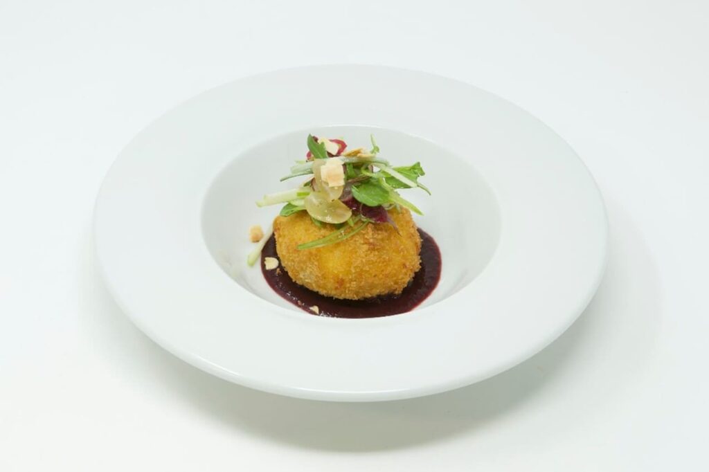 Un’esperienza sensoriale indimenticabile, il Brie avvolto in una crosta croccante di brioche alle mandorle, servito con una composta di frutti di bosco. Questo piatto combina la cremosità del formaggio con la dolcezza dei frutti di bosco, creando un equilibrio perfetto tra sapori e consistenze.