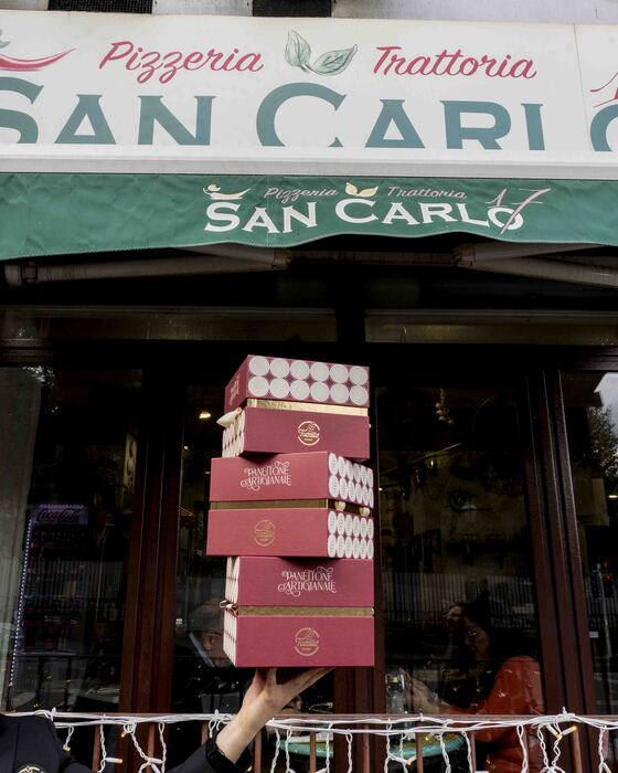 Tra le novità ideate per il Natale 2024, che potranno essere acquistate in esclusiva a Napoli e in edizione limitata, presso la pizzeria trattoria San Carlo 17, il panettone Scugnizzo Napoletano, un tributo alla tradizione napoletana, preparato con lavorazione a tre impasti e arricchito da un aroma di mandorla. Al suo interno, le dolci albicocche del Vesuvio e cioccolato al caramello, mentre la copertura è un mélange di cioccolato bianco e mandorle filettate. Elegante ed avvolgente, c’è poi il panettone Eiffel (Marron Glacé e crema alla Vaniglia), con un soffice impasto, arricchito con cubetti di Marron glacé e profumato agli agrumi, che racchiude una delicata crema alla vaniglia. Immancabile, il panettone Classico a tre impasti, un capolavoro della lievitazione, che si distingue per la sua estrema morbidezza, frutto di una lunga e complessa lavorazione a tre impasti.