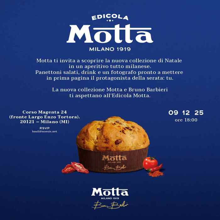 (Agen Food) – Roma, 04 dic. – Per il Natale 2025, Motta sceglie di raccontare la sua “nuova storia” proprio nel luogo dove le storie iniziano: l’edicola. In Corso Magenta 24 (fronte Largo Enzo Tortora)a Milano nasce infatti l’Edicola Motta, temporary store aperto dall’8 al 21 dicembre 2025, dedicato alla collezione Motta Natale 2025 e in particolare all’inedita linea di panettoni salati: il Panettone Salato – Ricetta all’Arrabbiata che unisce il carattere deciso della paprika e dei pomodori secchi al soffice impasto, regalando un gusto vivace e avvolgente, e il panettone salato Ricetta alla Mediterranea che celebra i profumi dell’Italia con ingredienti aromatici, creando un equilibrio raffinato tra note sapide e delicatezza.