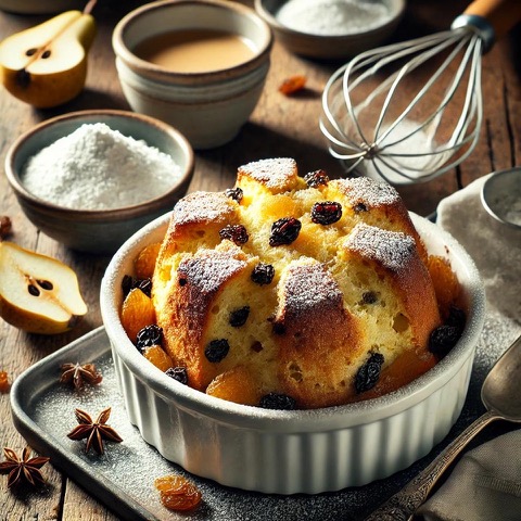 Lasciare riposare per 10-15 minuti e nel frattempo, preriscaldare il forno a 180°C. Infornare per circa 30-35 minuti, o fino a quando il pudding sarà dorato in superficie e ben rappreso.