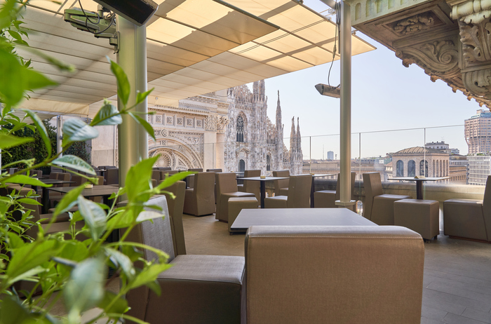 La vista spettacolare su Piazza del Duomo rende questa location unica sia per eventi privati che business. Il locale è aperto dalle 11.00 fino a tarda sera: durante l’aperitivo, in accompagnamento ai cocktail, vengono serviti finger food; dal menù è possibile scegliere diverse tapas gustose da condividere. In serata, immersi nell’atmosfera suggestiva della terrazza di The View, è possibile rilassarsi ascoltando una selezione musicale lounge.