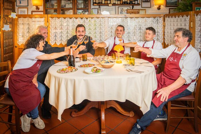 Si parte lunedì 13 ottobre con La Trattoria La Brinca, giunta per l’occasione da Ne, nell’entroterra di Chiavari e Lavagna, a pochi km dal mare della Riviera Ligure di Levante. Già negli anni ’30 la famiglia Circella gestiva un’osteria-bottega-mulino-frantoio in questo piccolo paese che era un po’ il luogo di ritrovo dei contadini locali, fino agli anni ’70, momento in cui con lo spopolamento del paese l’attività chiuse. I nipoti, memori della tradizione familiare, restaurano l’antico cascinale della Brinca e lì è nata l’osteria con bottega e cantina. Oggi La Brinca sono i fratelli Roberto e Sergio con la moglie Pierangela e i due figli gemelli Matteo e Simone, Stefano, figlio di Roberto, e tutte le ragazze e ragazzi collaboratori di cucina e di sala. La nonna Franca, dopo una vita ai fornelli, soprintende all’orto. La cucina guidata dal giovane Simone, propone i piatti tradizionali dell’entroterra della Liguria di Levante, legati alla terra e alle stagioni, con un continuo utilizzo di erbe, verdure e frutta locali, e profumatissime erbe aromatiche.