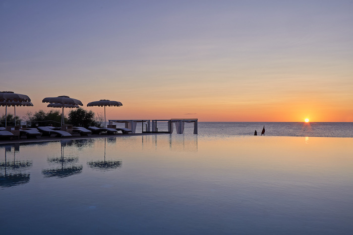 A pranzo la proposta è doppia e simultanea: il ristorante Bella Vista, a ridosso della bella piscina a sfioro e ancor più vicino al mare, con una cucina espressa e veloce rappresentativa dei sapori iconici delle tradizioni; poi l’Infinity Bar che può ospitare un massimo di 20 coperti e presenta il suo light lunch con caesar salad, taglieri, club sandwich e tanto altro.