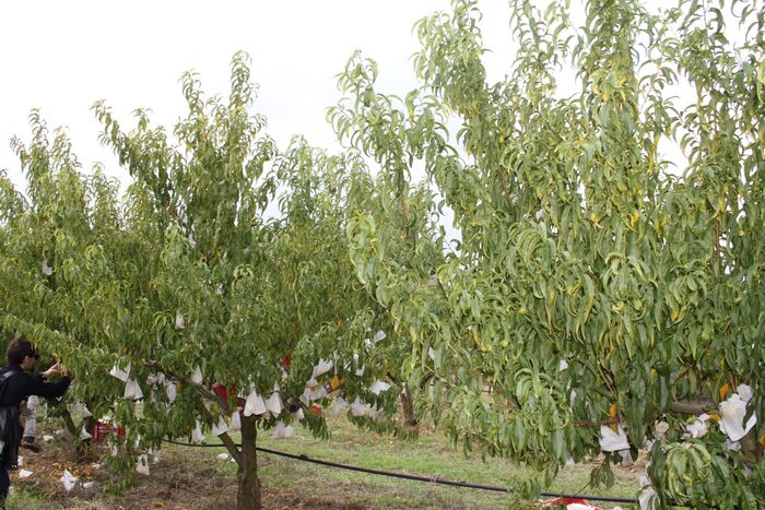 Fiorisce in primavera, quando i campi si tingono di rosa, e giunge a maturazione solo a fine estate. È tardiva (tra agosto e novembre), come chi non ha fretta di mostrarsi ma sa che la bellezza arriva quando il sole è più dolce. Il suo insacchettamento è un rito che unisce tecnologia e poesia: migliaia di mani avvolgono ogni piccolo frutto in un involucro di carta che lo protegge, lasciando filtrare appena la luce. Il risultato è una pesca vellutata, dai toni caldi, dal profumo intenso, con una polpa che racconta il paesaggio da cui proviene.
